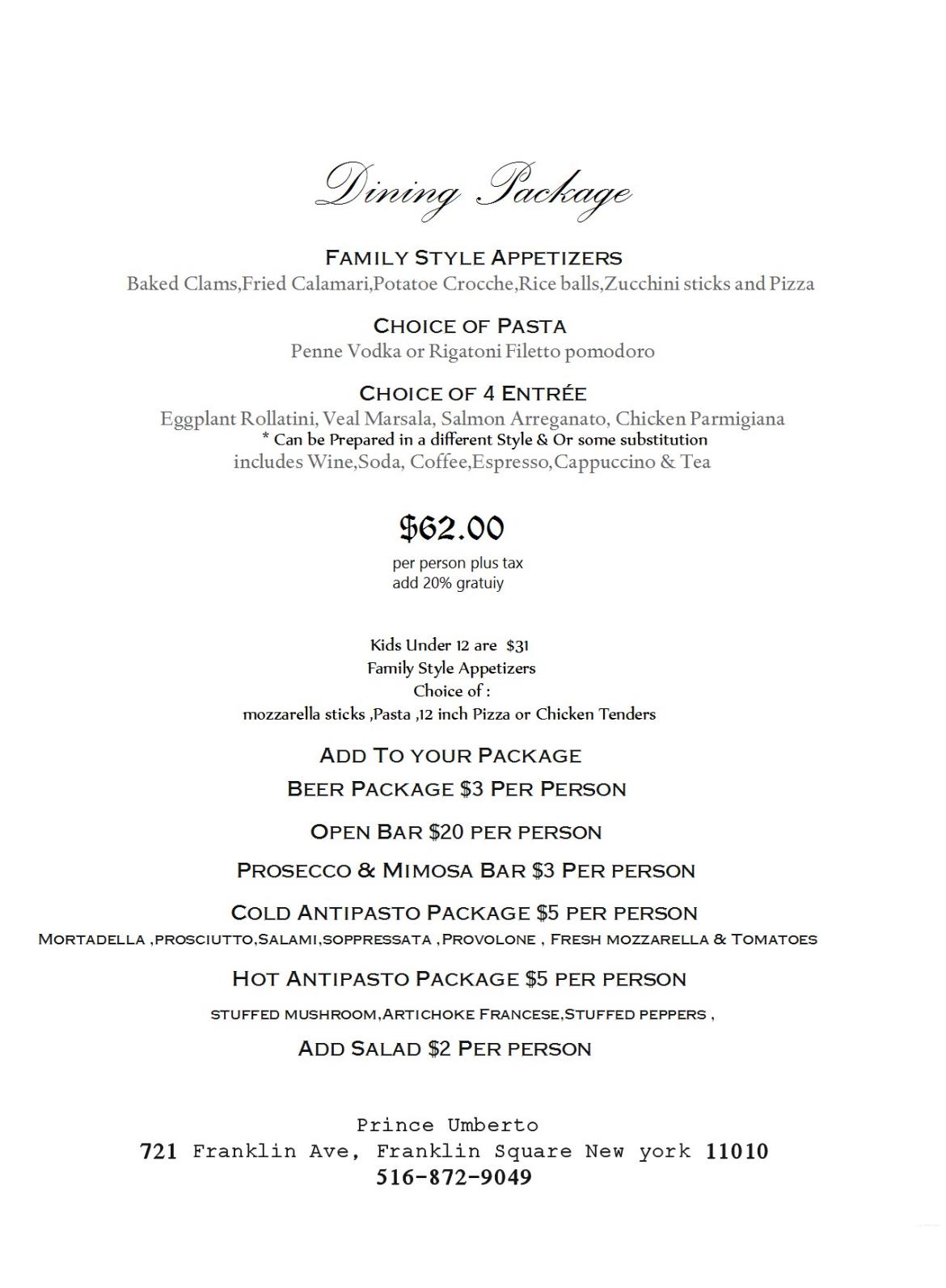 Minimum 35 adults required to close the dining room after 3:00 PM Monday-Thursday Events